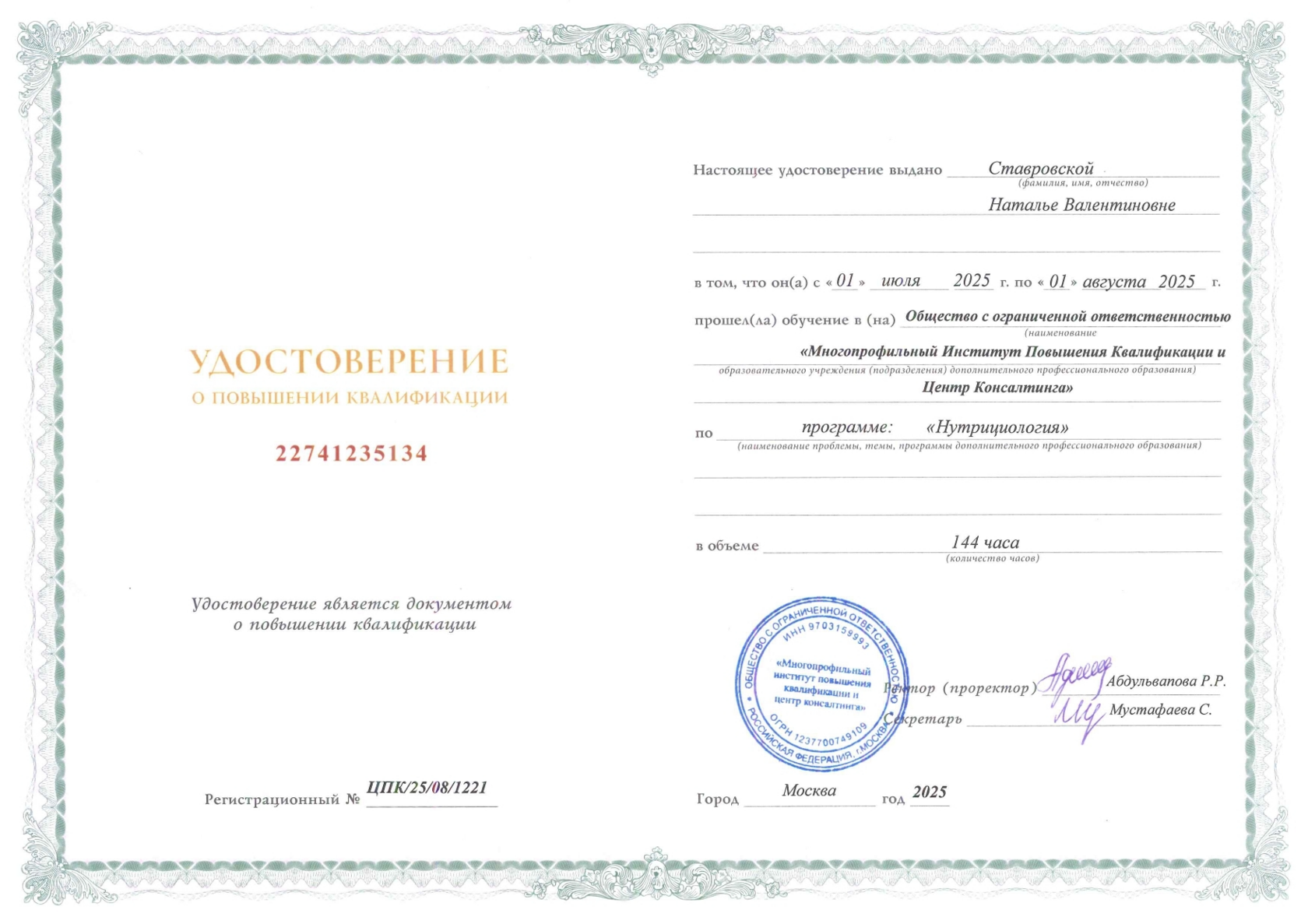 Я — Наталья Ставровская, врач-косметолог с 25-летним опытом. Сегодня моя практика основана на объединении косметологии и нутрициологии. Вместо временного улучшения внешности я работаю с первопричинами — внутренними дефицитами, влияющими на здоровье и внешний вид. Программа оздоровления с использованием нутриентов NSP запускает процессы восстановления на клеточном уровне и возвращает естественное сияние коже.